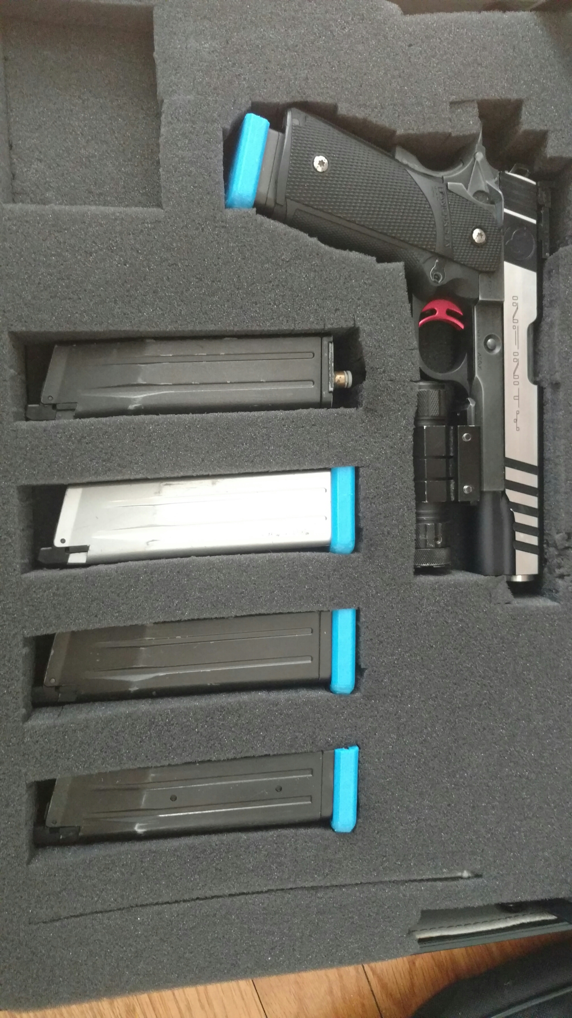 I finally got around to making the short version of my magazine base for the 5.1 and 4.3 Hi-Capa. It’s up on Thingiverse (you might need to scale it up 10x for printing). I also have a base made for the FPG/Glock series which works but needs one change before I put it up.